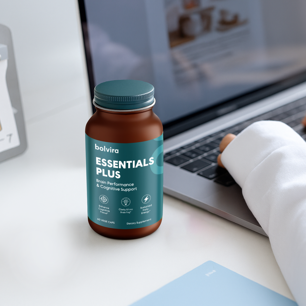 Combat stress, brain-fog, and lack of focus with Bolvira Essentials Plus. This all-in-one formula is designed to support mental energy, focus and aids memory recall. So you can get more done and perform at your peak. Ideal for those seeking a natural boost to their mental performance, whether in professional, academic, or everyday settings.